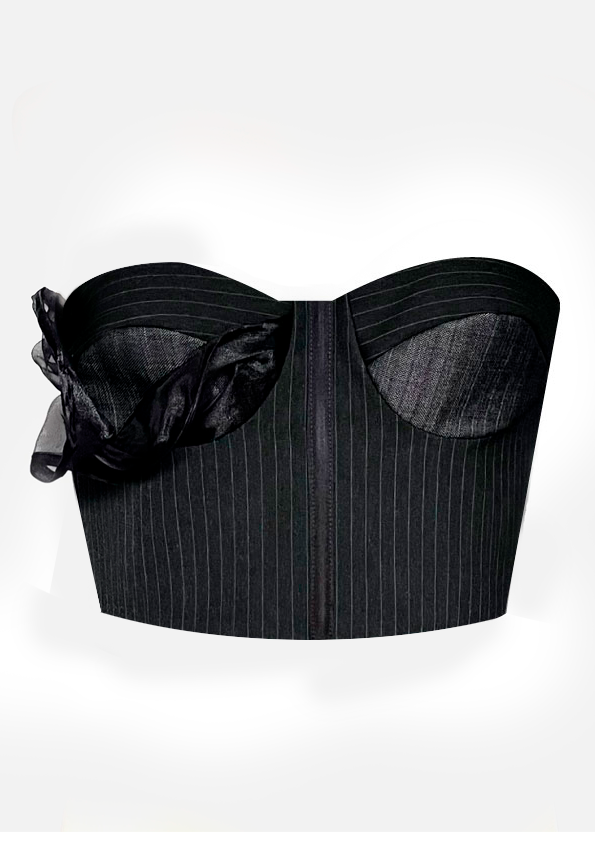 BUSTIER DE CASIMIR, CON DETALLE DE ORGANZA EN COPA IZQUIERDA.