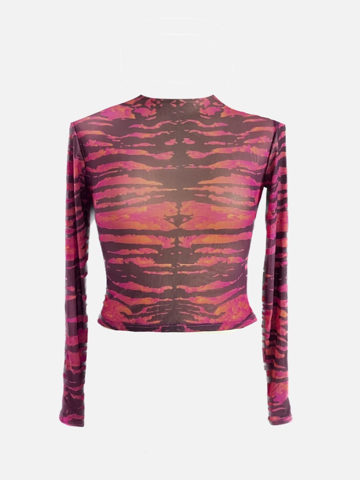 Blusa manga larga corte clásico de tela tipo mesh.